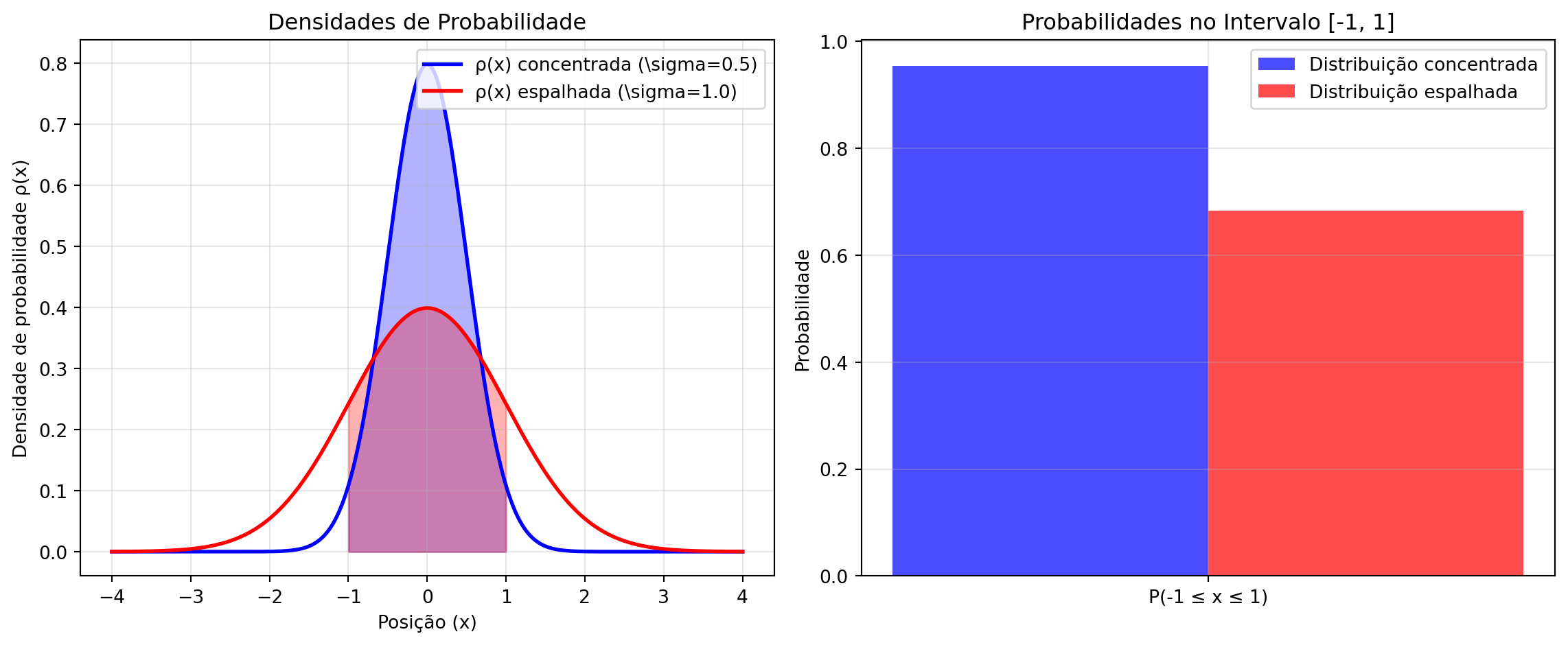 - Módulo Quadrado (\(|\psi(x)|^2\)): Densidade de probabilidade fisicamente mensurável. Representa a probabilidade por unidade de comprimento de encontrar a partícula na posição \(x\).