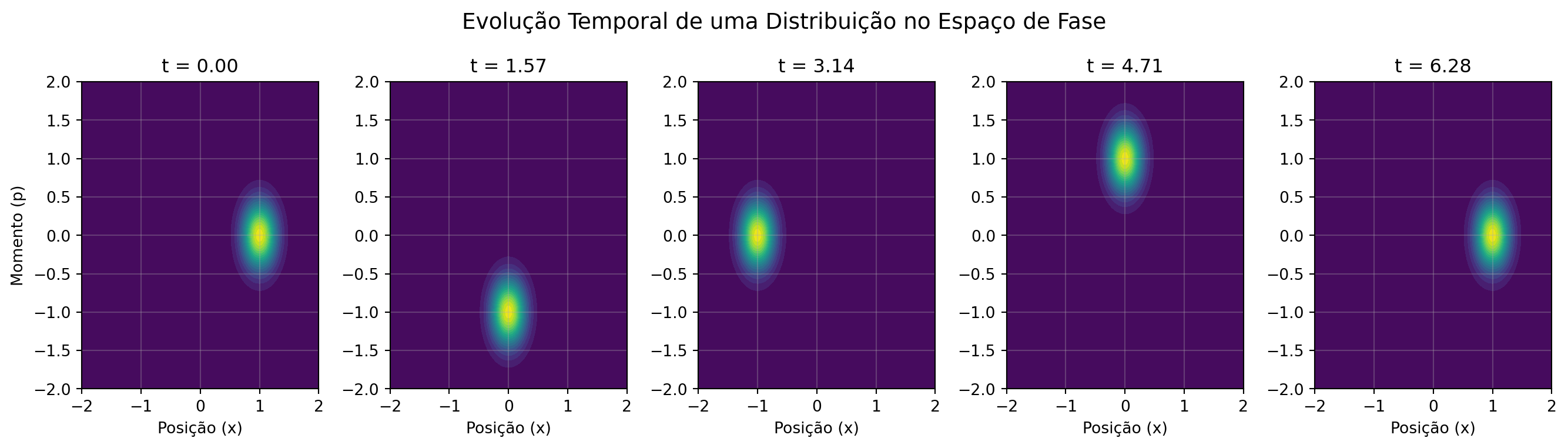 fig.suptitle("Evolução Temporal de uma Distribuição no Espaço de Fase", fontsize=14)