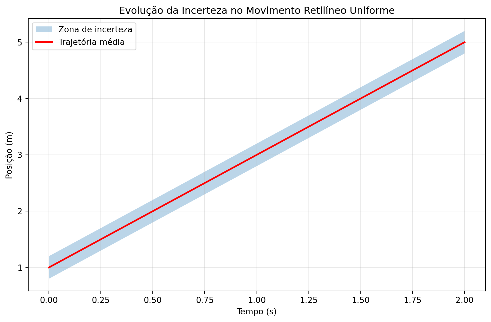 - Para o MUA, derive a expressão da incerteza \(\sigma_x(t)\) considerando incertezas iniciais em \(x_0\) e \(v_0\) e compare com a aproximação mostrada no gráfico.