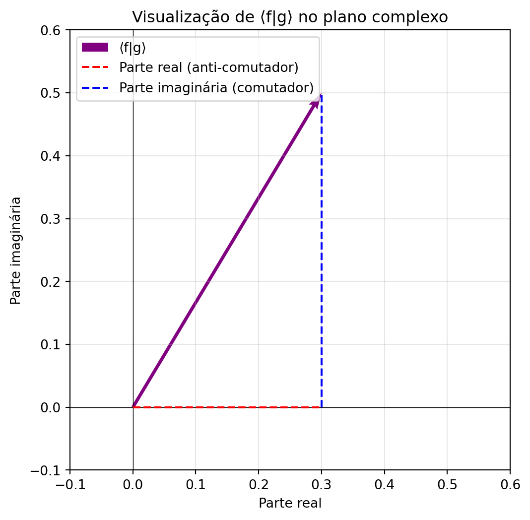 - O vetor roxo representa (\(\langle f|g \rangle\)) como um número complexo.