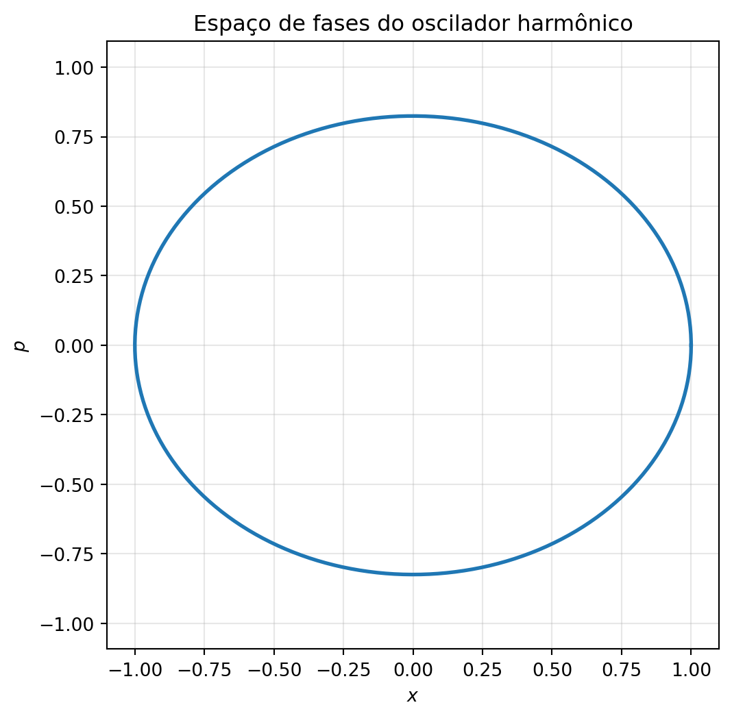 - Explique qualitativamente como a forma elíptica da trajetória no espaço de fases do oscilador harmônico reflete a conservação de energia.
